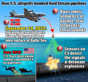 Хронология: 1)Водолазы ВМС заложили взрывчатку в июне 2022 г., используя учения НАТО в качестве прикрытия. 26.09.22 патрульный самолет доставил гидроакустический буй. 3) Дистанционно дана команда на подрыв. 4)Взрывы произошли.
